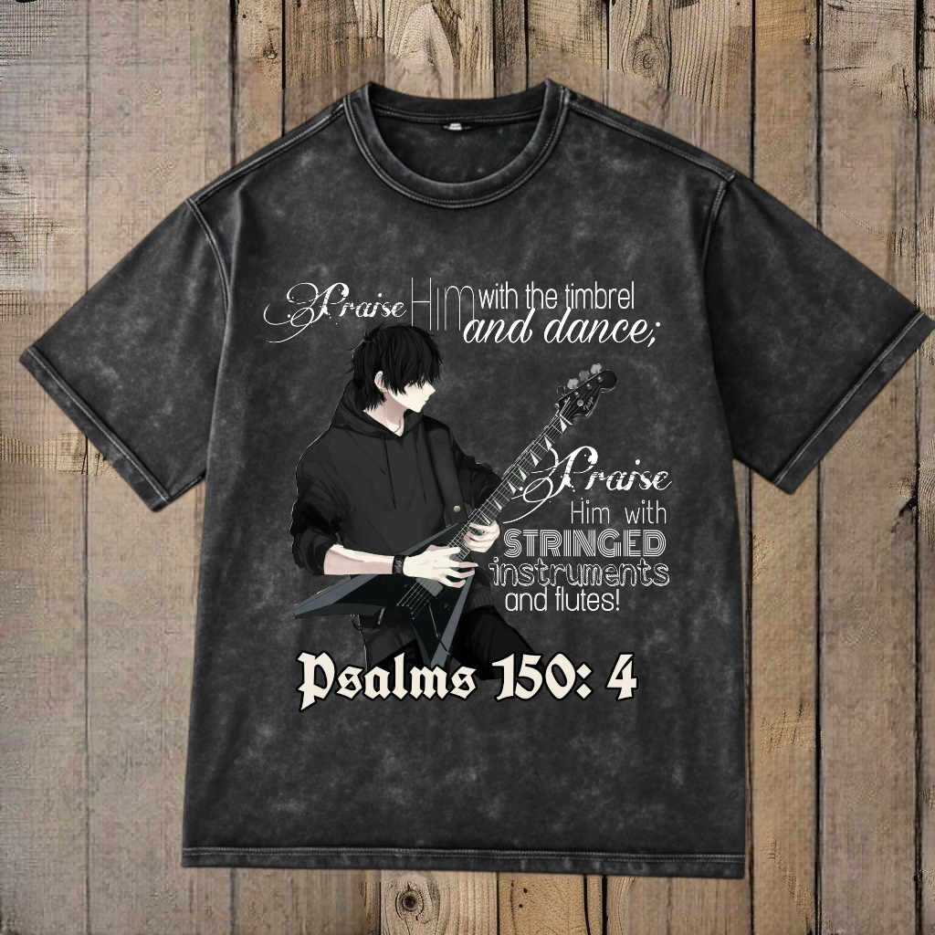We love this newest release graphic tee because we love to praise the Lord with timberls, dancing, stringed instruments and flutes.