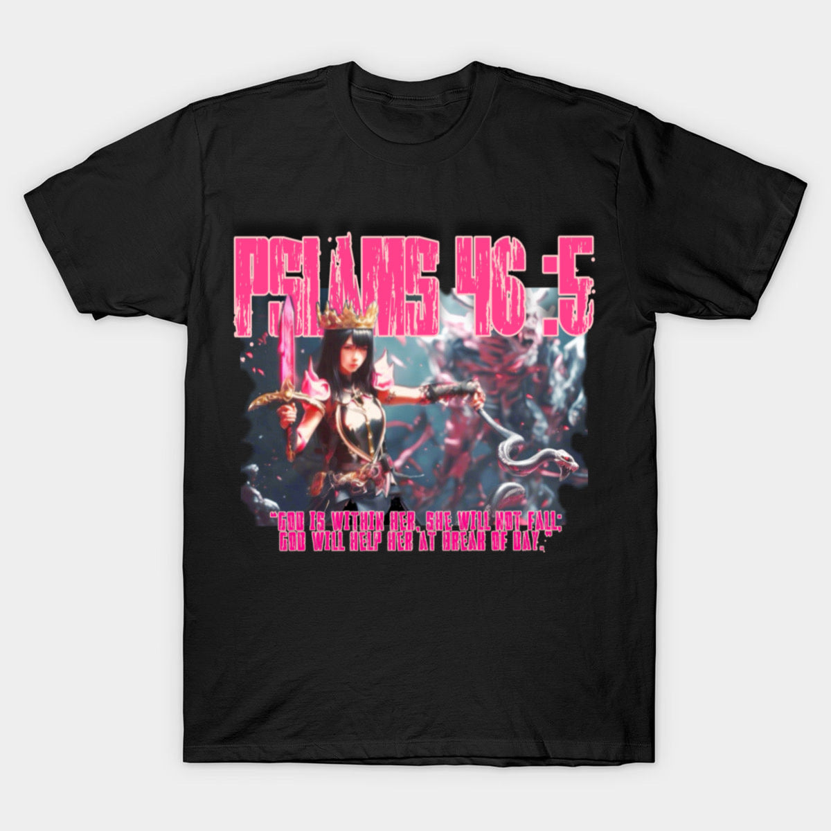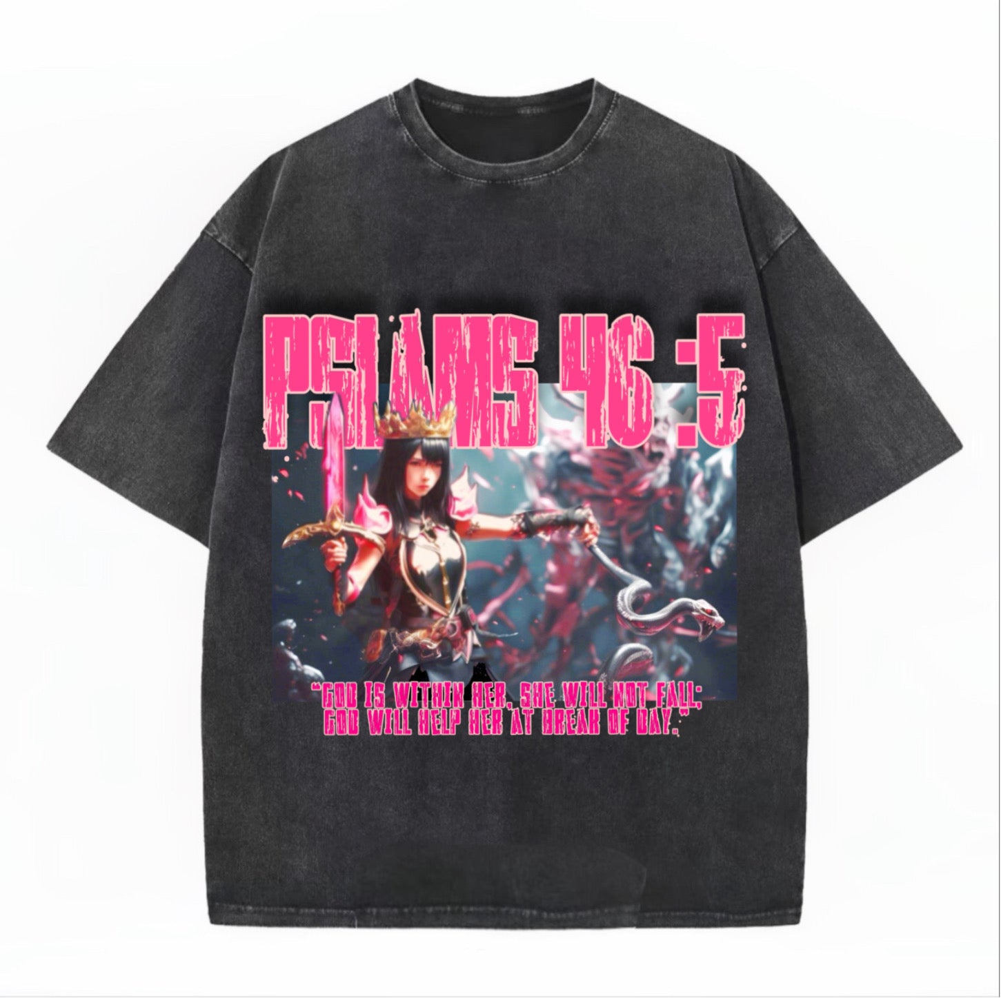 God will help her at break of day.” Women’s acid wash T-Shirt. A warrior bride with a sword of the spirit and her breast plate of righteousness and her belt of truth (Ephesians 6) and she’s holding a serpent about to cut its head off. (Mark 16:17-18) they shall take up serpents … and it shall in no wise hurt them!!!